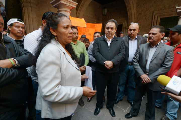 Representantes de organizaciones de comerciantes que se manifestaron en Palacio Municipal fueron atendidos esta mañana por el secretario del Ayuntamiento de Morelia, Arturo José Mauricio Fuentes, en representación del Presidente municipal Wilfrido Lázaro Medina.