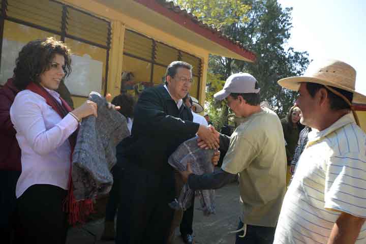El presidente municipal, Wilfrido Lázaro Medina, y su esposa, Maggy Oribio de Lázaro, presidenta del DIF Morelia, entregaron de manera personal las primeras cobijas y colchonetas que hace unos días enviara el gobierno federal para que las familias que viven en condiciones de pobreza y en lugares donde más se resienta el frío, amortigüen un poco las bajas temperaturas que aún prevalecerán en el país.