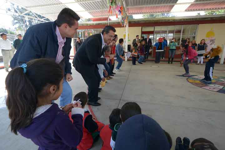 Entusiasmados y derrochando alegría, los niños y niñas del jardín de niños Rosario Castellanos recibieron al presidente municipal, Wilfrido Lázaro Medina, quien preocupado por proporcionar espacios dignos a los educandos del municipio, donde puedan desarrollar sus capacidades intelectuales, dijo que esta institución pronto podrá contar con un aula de usos múltiples y juegos infantiles; petición hecha por el personal administrativo y d... Ver más...
