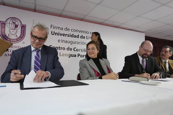 El Gobierno de Michoacán, la Secretaría de Educación y la Universidad Latina de América (Unla), celebraron la firma de convenio que se realizó con la Universidad de Lisboa para establecer el Centro de Certificación de la lengua portuguesa. Durante la firma de convenio y en representación de Silvano Aureoles Conejo, Gobernador del Estado de Michoacán; Silvia Figueroa Zamudio, secretaria de Educación, resaltó que las alianzas que se f...