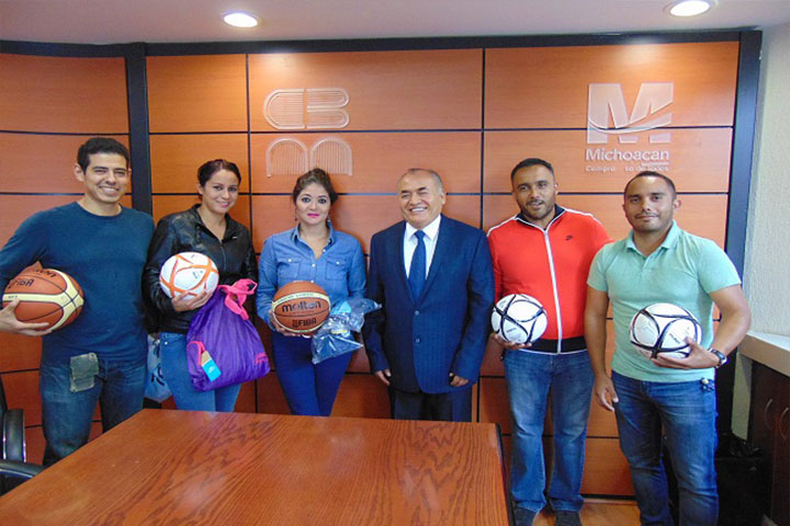 El Lic. Rolando López Villaseñor, Director General del Colegio de Bachilleres del Estado de Michoacán, entregó este día balones y uniformes a los capitanes representantes de los equipos participantes en los XXIX Juegos Deportivos Interdependencias 2015 "Servidores Públicos, Unidos por el Deporte".