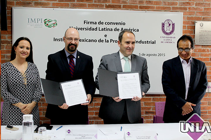 El pasado 5 de agosto, la Universidad Latina de América y el Instituto Mexicano de la Propiedad Industrial (IMPI) signaron un convenio de colaboración con el fin de promover ?a través de actividades académicas- la importancia de la propiedad industria.