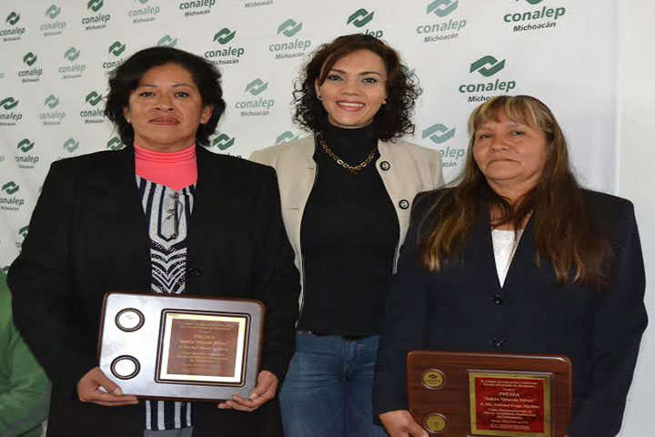 Xóchitl Marín Aguilera y Soledad Fraga Hipólito, docentes en el plantel Conalep Pátzcuaro, recibieron la Presea "Adela Velarde Pérez", con la cual el Colegio de Educación Profesional Técnica del Estado de Michoacán reconoce el Mérito Académico Profesional de Enfermería.