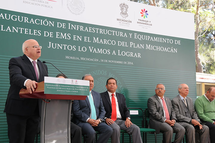 NOTICIAS 14/11/2014Invierten Federación y Estado 43mdp en infraestructura para educación Media SuperiorComo parte de la implementación del Plan Michoacán 2014, la administración estatal y el Gobierno de la República entregaron obras de fortalecimiento a la Educación Media Superior por el orden de 43.3 millones de pesos en beneficio de 12 centros educativos y más de 9 mil alumnos.