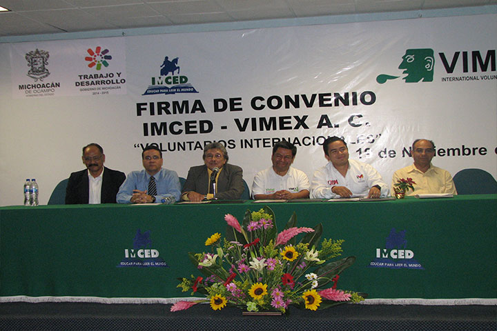Hoy fue firmado un convenio de colaboración entre el Instituto Michoacano de Ciencias de la Educación y la asociación civil Voluntarios Internacionales México (VIMEX), a través del cual se apoyarán estancias e intercambios internacionales de jóvenes que serán integrados a proyectos de beneficio social.