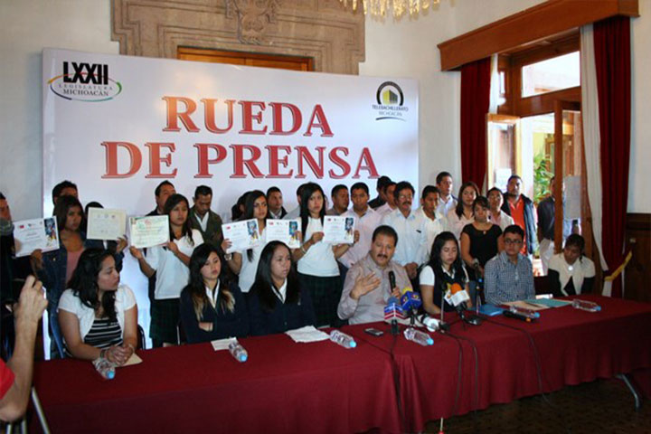 Con la finalidad de dar a conocer las condiciones bajo las cuales operan los planteles del Sistema Telebachillerato Michoacán, un grupo de jóvenes estudiantes representantes de diversos centros escolares, solicitaron al diputado Reginaldo Sandoval Flores gestione con las instancias correspondientes, el destino de más recursos para este sistema escolar el próximo año.