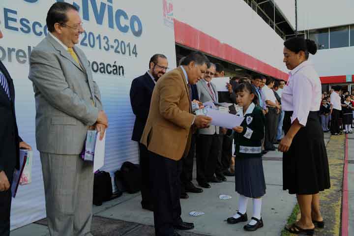 El gobernador de Michoacán, Fausto Vallejo Figueroa, se comprometió a entregar un reconocimiento y un estímulo especial a Goretti Torres, estudiante del CBTIS 149 de Morelia, quien se apoderó de la medalla de oro en la Gran Feria Candiense de la Ciencia 2014 (Canadá-Wide Science Fair).
