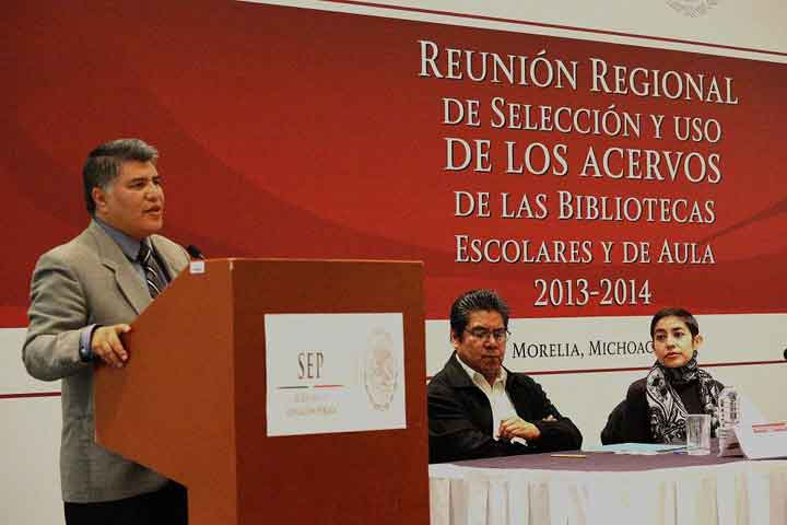 El secretario de Educación en el Estado, J. Jesús Sierra Arias, inauguró la Reunión Regional de Selección de uso de los Acervos de las Bibliotecas Escolares y de Aula 2013-2014, organizado por el Programa Nacional de Lectura (PNL), donde externó que el gobierno estatal se siente orgulloso que se haya elegido a Michoacán para seleccionar los acervos bibliográficos que se entregarán en las escuelas del país.