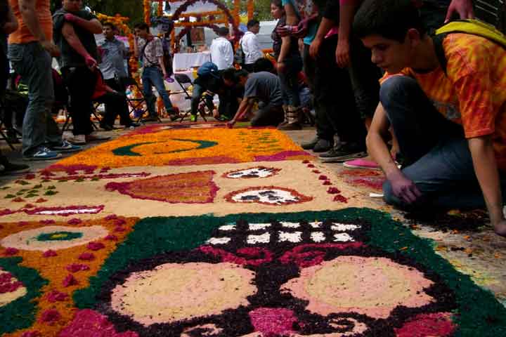 Gracias a la coordinación de los profesores de artes plásticas, alrededor de 300 estudiantes fueron seleccionados para la elaboración de la ofrenda monumental que en este año fue dedicada a la exhibición de calaveras y catrin... Ver más...