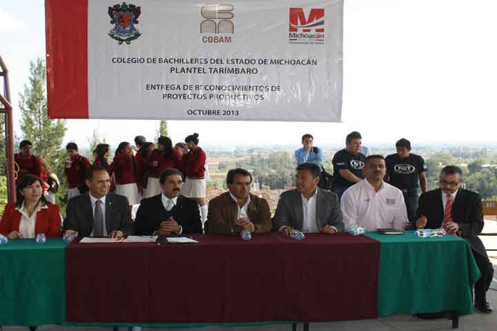 Con el objetivo de reconocer el trabajo de los alumnos del Colegio de Bachilleres del Estado de Michoacán, este dÃa se llevó a cabo la entrega de reconocimientos a los 3 primeros lugares que destacaron con sus proyectos productivos realizados en la 29 Jornada Estatal Académica, Cultural y Deportiva de esta institución educativa.