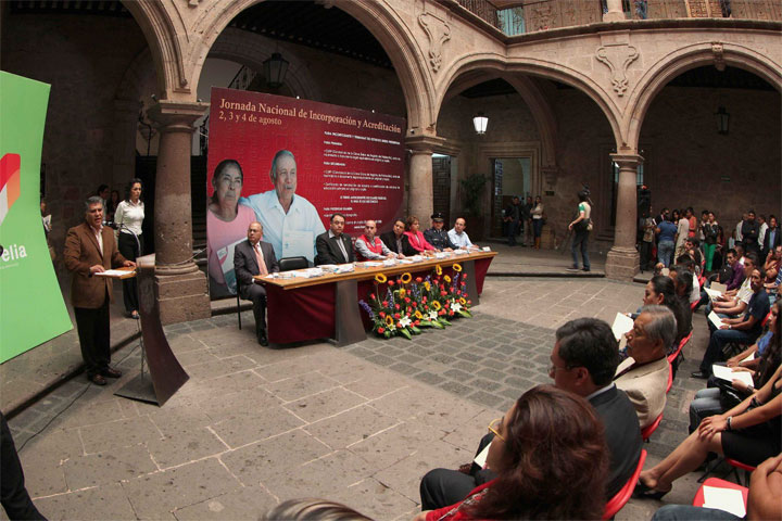 En el patio principal del Ayuntamiento de Morelia y ante el delegado del INEA en Michoacán, Juan José Díaz Barriga Vargas, ... Ver más...