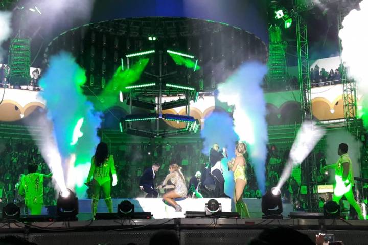 En punto de las nueve de la noche Ana Gabriel apareció en el escenario acompañada de su orquesta para dar inició a memorable concierto e interpretar "Destino", posteriormente "Soledad", "Mar y Arena", "Simplemente Amigos, "Ay Amor", "Es Demasiado Tarde", "Mi Talosmán" "Evidencias", ... Ver más...