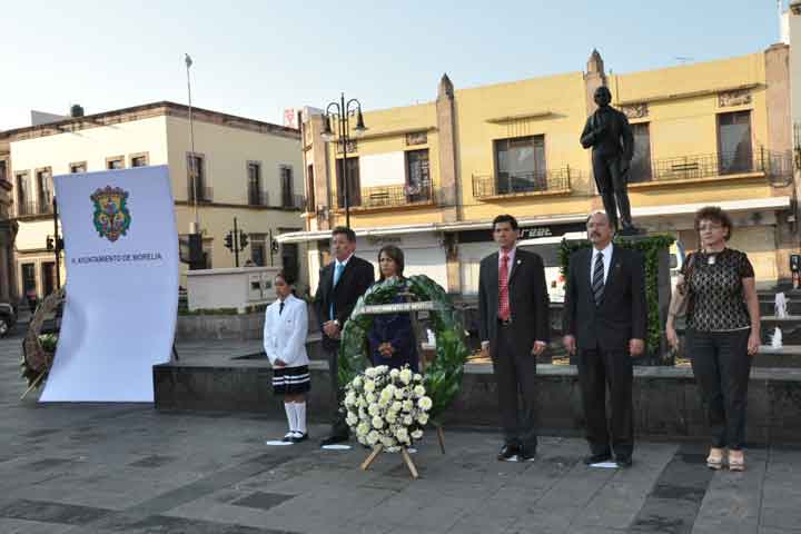 En punto de las ocho de la mañana, miembros del Cabildo moreliano y del gabinete municipal, presidieron el izamiento de la Bandera Nacional en el asta que se colocó en la plaza Melchor Ocampo, en el corazón de esta ciudad capital.