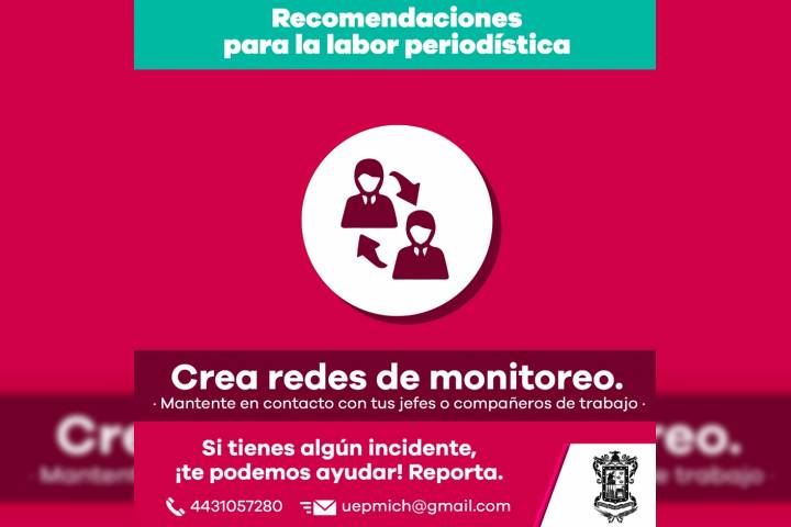 NOTICIAS 30/06/2018Contribuye Gobierno de Michoacán con CNDH en favor de periodistasCon la premisa de seguir garantizando y promoviendo la libertad de expresión, derecho inherente a la labor periodÃstica, el Gobierno del Estado contribuye con la Comisión Nacional de Derechos Humanos (CNDH) en el desarrollo de acciones orientadas a generar las mejores condiciones para la cobertura que medios de comunicación realizarán durante la jornada electoral del próximo domingo.