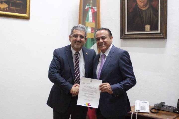 En su oficina de Palacio de Gobierno, el encargado de la polÃtica interna entregó el documento al nuevo titular de la dependencia encargada de promover la capacitación entre las michoacanas y los michoacanos.