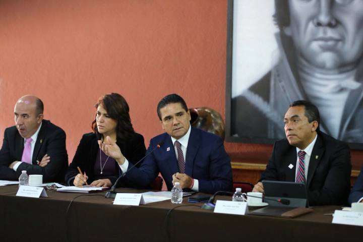 NOTICIAS 20/02/2018Continúa Gobernador construcción de agenda conjunta por Michoacán Con la convicción de seguir construyendo los proyectos conjuntos que requiere la entidad para su desarrollo y el de sus habitantes, el Gobernador Constitucional Silvano Aureoles Conejo se reunió este martes con las diputadas y diputados que integran la Junta de Coordinación Política del Congreso del Estado.