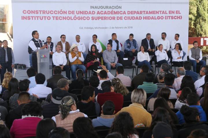 NOTICIAS 02/02/2018Inaugura Silvano Aureoles infraestructura educativa en HidalgoPara garantizar a las y los jóvenes una formación integral con espacios dignos, el Gobernador Constitucional Silvano Aureoles Conejo inauguró la construcción de la Unidad Académica Departamental tipo III en el Instituto Tecnológico Superior de Ciudad Hidalgo, obra que requirió una inversión superior a los 13 millones de pesos.