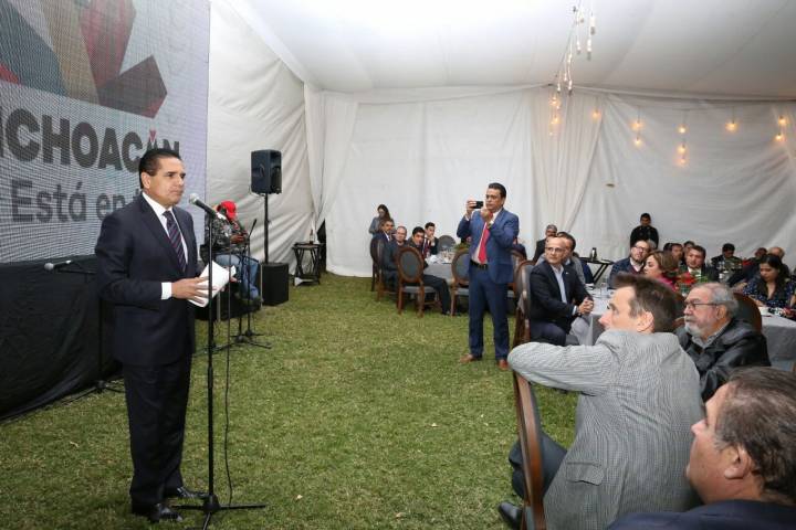 Acompañado del secretario de Desarrollo Económico, Jesús Melgoza Velázquez, ante las mujeres y hombres de negocios el mandatario michoac... Ver más...