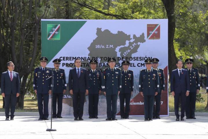 NOTICIAS 01/12/2017Atestigua Gobernador toma de posesión del nuevo comandante de la XII Región MilitarEl Gobernador Constitucional Silvano Aureoles Conejo asistió a la toma de posesión y protesta de bandera del general Javier Cruz Rivas como nuevo comandante de la XII Región Militar, que comprende los estados de Guanajuato, Querétaro y Michoacán.