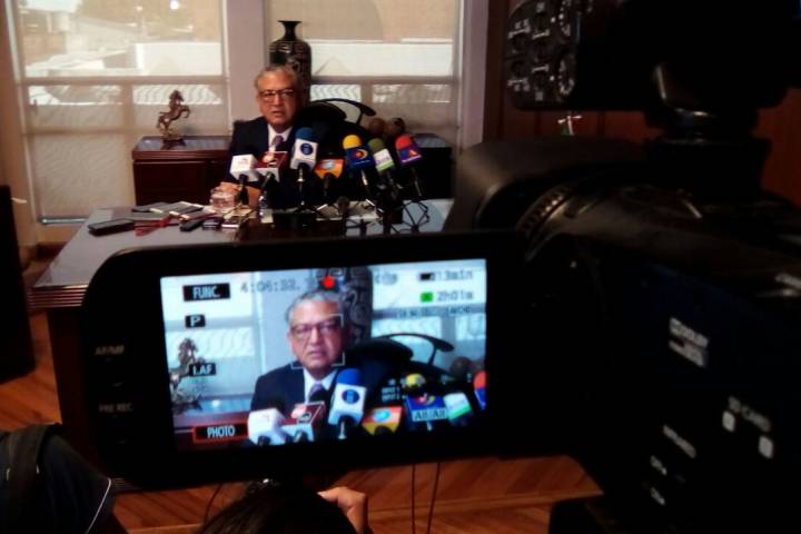 En conferencia de prensa, acompañado de la coordinadora general de Comunicación Social, Julieta López Baut... Ver más...