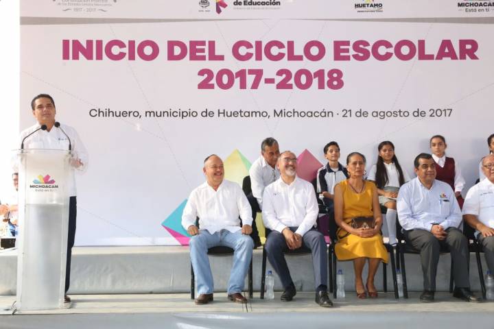 NOTICIAS 21/08/2017En Michoacán sentamos las bases para transformar la educación: Silvano Mi compromiso es que cada una de las niñas y niños de Michoacán reciban educación de calidad, con espacios dignos y las herramientas necesarias, pues la educación es la columna vertebral para el desarrollo de la entidad, así lo expresó el Gobernador Constitucional Silvano Aureoles Conejo, en el marco del arranque del Ciclo Escolar 2017 - 2018 en la Escuela Primaria "Cuauhtémoc", de la comunidad de Chihuero, en el municipio de Huetamo.