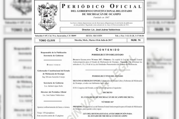 Este martes, fue promulgado en Michoacán, el Sistema Estatal Anticorrupción, luego de que los diputados concluyeran con la aprobación de las normas que lo integrarán.
