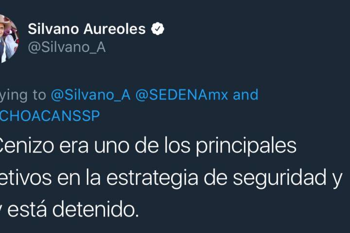 A través de redes sociales, el mandatario estatal informó el hecho, donde acreditó la captura a la SecretarÃa de Defensa Nacional y la SecretarÃa de Seguridad Pública de Michoacán.