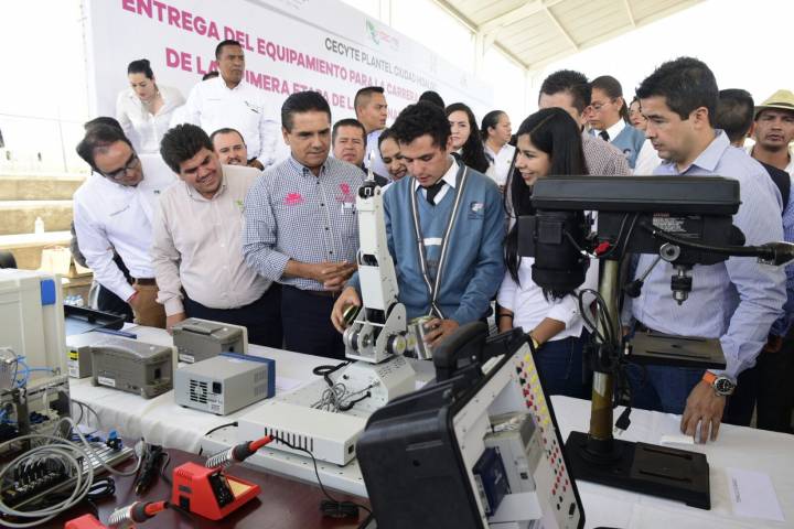 NOTICIAS 27/05/2017Entrega Gobernador equipamiento y obras a Cecytem de Ciudad Hidalgo En el Gobierno del Estado estamos comprometidos a seguir trabajando para consolidar la calidad educativa de Michoacán, afirmó el Gobernador Constitucional Silvano Aureoles Conejo al entregar equipamiento para la carrera de Mecatrónica e inaugurar la primera etapa de las oficinas administrativas y techo elevado del Colegio de Estudios Científicos y Tecnológicos del Estado de Michoacán (Cecytem) donde se invirtieron 5 millones 300 mil pesos.... Ver más...