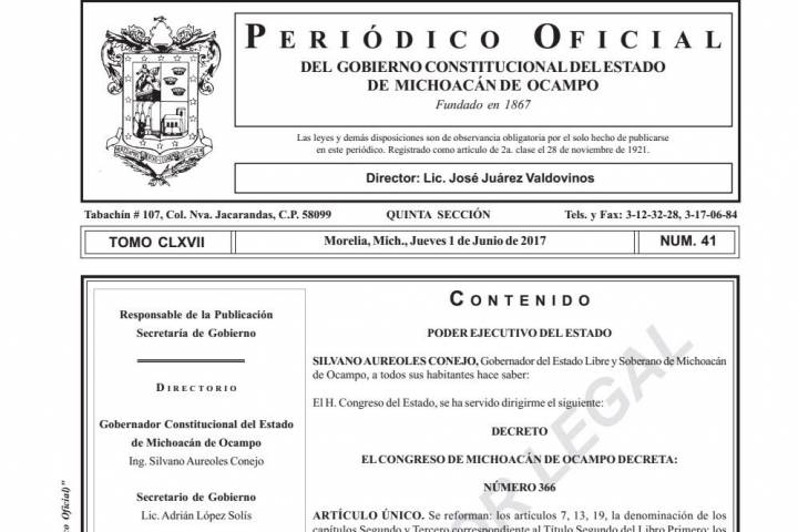 NOTICIAS 02/06/2017Entran en vigor las reformas al Código Electoral: SegobDe conformidad con el artículo 105, fracción II, penúltimo párrafo, de la Constitución Política de los Estados Unidos Mexicanos, que establece como fecha límite el 2 de junio de 2017 para promulgar y publicar reformas federales y locales en materia electoral, fue publicada en el Periódico Oficial del Estado de Michoacán la Reforma el Código Electoral.
