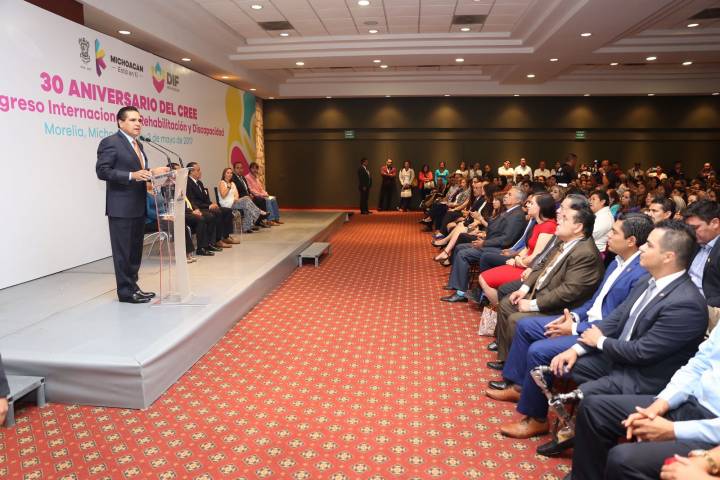 El gobernador del estado, Silvano Aureoles Conejo, inauguro este martes el primer Congreso Internacional de Rehabilitación y Discapacidad, durante el 30 aniversario del Centro de Rehabilitación y Educación Especial (CREE), donde se entregaron reconocimientos a los trabajadores que se han dedicado a darle atención a miles de michoacanos a lo largo de los años.