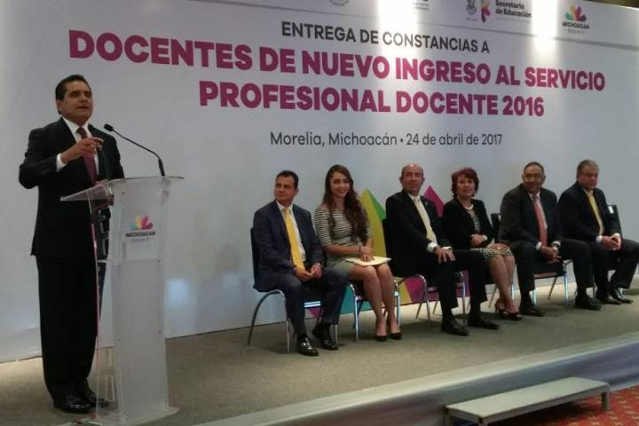 NOTICIAS 24/04/2017Entrega Gobernador constancias a docentes de nuevo ingreso al Servicio Profesional Docente 2016 Apostarle a la educación de calidad, es la única forma en la que Michoacán entrará a la transformación que requiere, señaló el Gobernador Constitucional Silvano Aureoles Conejo, en el marco de la entrega de constancias a docentes de nuevo ingreso al Servicio Profesional Docente 2016.