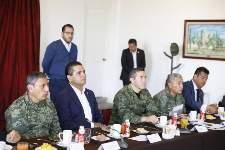 El gobernador del estado, Silvano Aureoles y su gabinete de seguridad, se reúnen esta mañana en Palacio Municipal, para instalar la Mesa de Seguridad y Justicia.