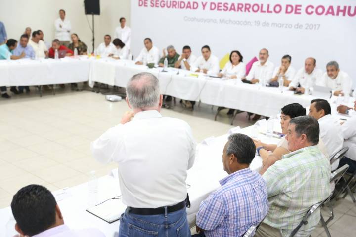 NOTICIAS 19/03/2017Avanzan obras y acciones para el desarrollo de CoahuayanaA no bajar la guardia y mantener el trabajo coordinado en un diálogo permanente, llamó el Gobernador del Estado, Silvano Aureoles Conejo a los integrantes del Consejo Ciudadano de Seguridad y Desarrollo de Coahuayana, durante la octava reunión que se llevó a cabo este domingo en el municipio costero.