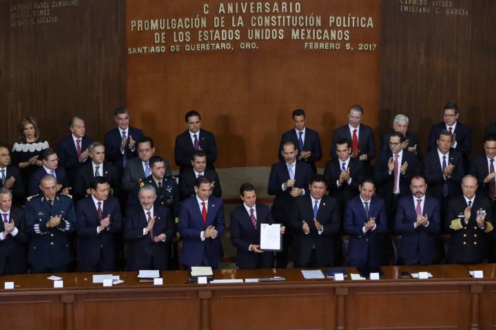NOTICIAS 05/02/2017Atestigua Gobernador ceremonia nacional por Centenario de la Constitución El Gobernador de Michoacán, Silvano Aureoles Conejo, atestiguó la ceremonia con motivo del primer Centenario de la Constitución Política de los Estados Unidos Mexicanos de 1917, evento que fue encabezado por los titulares de los tres Poderes del Estado Mexicano.