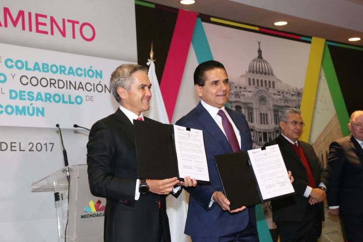 El gobernador del estado, Silvano Aureoles Conejo y Miguel Ángel Mancera, firmaron este viernes el Hermanamiento que permitirá coordinar Acciones para el Desarrollo de una Agenda Común entre Michoacán y la Ciudad de México.