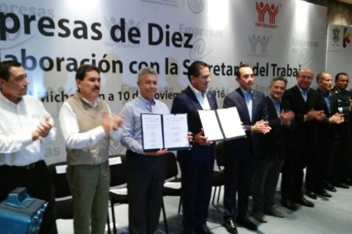 NOTICIAS 10/11/2016Genera Michoacán oportunidades de empleo conjunto con Infonavit: SilvanoCon el objetivo de apoyar a los derechohabientes de este Instituto que se quedan sin empleo, el Gobernador Silvano Aureoles firmó, este jueves, el convenio de colaboración de Bolsa de Trabajo con el Instituto del Fondo Nacional de la Vivienda para los Trabajadores (Infonavit), y entregó, junto con el director general, David Penchyna Grub, reconocimientos a "Empresas de Diez" michoacanas.