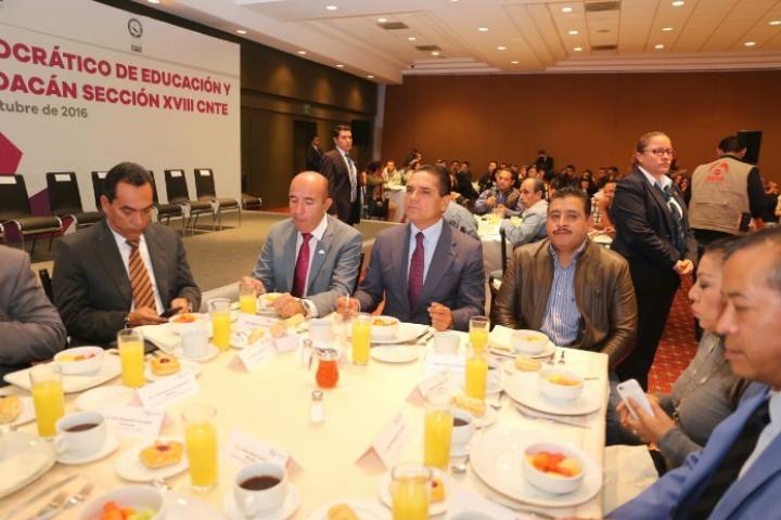 El gobernador del estado, Silvano Aureoles, ser reunió este miércoles con docentes de la sección XVIII de la CNTE, para conocer a detalle la propuesta de los profesores en cuanto al nuevo modelo educativo.