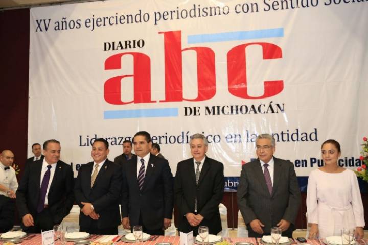 NOTICIAS 21/10/2016Asiste Silvano Aureoles al XV Aniversario del Diario ABC de MichoacánLos medios de comunicación oportunos, objetivos y veraces son indispensables para mantener informada a una sociedad que cada vez es más activa y participativa, de ahí la importancia de la labor que realizan, destacó el Gobernador del estado, Silvano Aureoles Conejo, en la celebración del XV Aniversario de la fundación del Diario ABC de Michoacán.