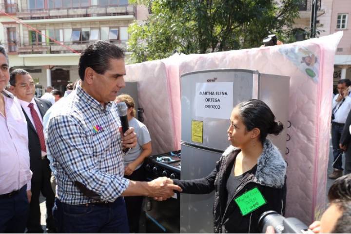 Colchones, estufas, refrigeradores, licuadoras y planchas son los artículos que conforman los recursos que les otorgó el mandatario estatal con apoyo de la federación y el municipio.