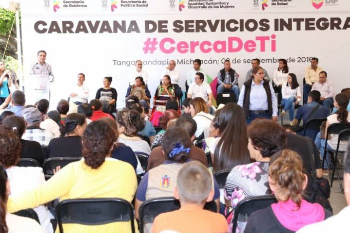 NOTICIAS 08/09/2016Encabeza Gobernador Caravana de Servicios Integrales en Tangamandapio Si caminamos juntos, de manera coordinada y en equipo podremos hacer frente a las necesidades y atender las demandas más sentidas de la población, expresó el Gobernador Constitucional Silvano Aureoles Conejo al encabezar las Caravanas de Servicios Integrales #CercaDeTi en el municipio de Tangamandapio.