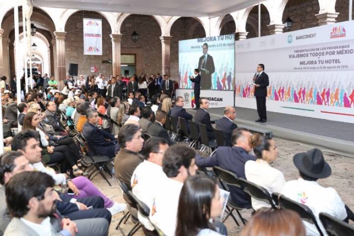 NOTICIAS 23/08/2016Presencia Gobernador lanzamiento de Viajemos Todos por México Esta tarde, el Gobernador Constitucional, Silvano Aureoles Conejo, presenció junto al secretario de Turismo Federal, Enrique de la Madrid Cordero, el lanzamiento de los Programas "Viajemos Todos por México" y "Mejora tu hotel", en donde quedó de manifiesto la recuperación de Michoacán en materia turÃstica.