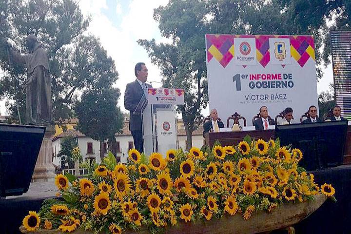 Al participar en el Primer Informe de Gobierno de VÃctor Manuel Báez Ceja, presidente municipal de Pátzcuaro, y con la representación del Gobernador Constitucional, Silvano Aureoles Conejo, el enca... Ver más...