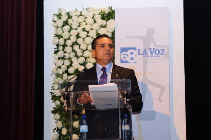 Al participar en la entrega de las Preseas "José Tocavén Lavín", en el marco del 68 aniversario del periódico La Voz de Michoacán, el titula... Ver más...