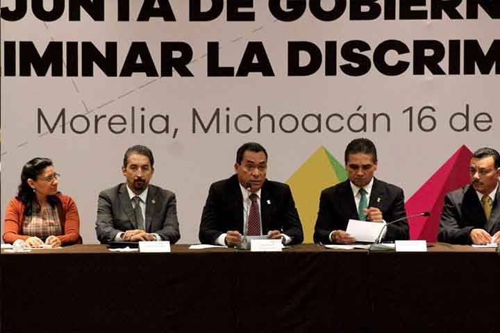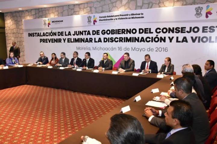 NOTICIAS 16/05/2016Se instala Junta de Gobierno del Consejo Estatal para Prevenir y Eliminar la Discriminación y la ViolenciaSólo con la construcción de un Michoacán incluyente, en el que se pueda combatir de raíz la desigualdad y la pobreza, vamos a avanzar hacia la conciliación de un estado de bienestar pleno, expresó el Gobernador Silvano Aureoles Conejo, durante la instalación de la Junta de Gobierno del Consejo Estatal para Prevenir y Eliminar la Discriminación y la Violencia.