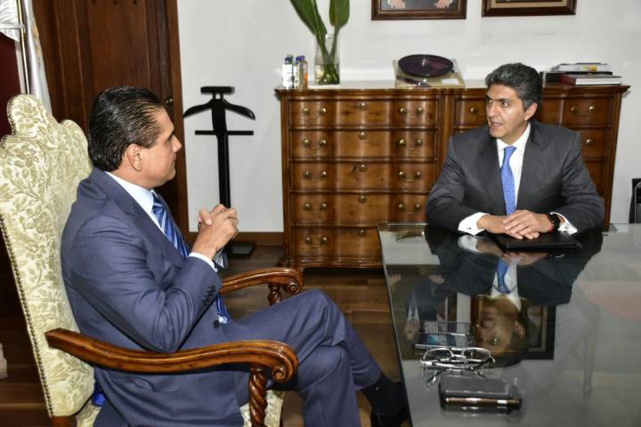 En este saludo de cortesía, también estuvieron presentes el secretario de Desarrollo Económico estatal, Antonio Soto Sánchez y el delegado de Profeco en la entidad, Miguel Ildefonso Mares Chapa.... Ver más...