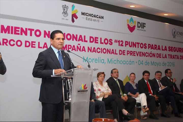 NOTICIAS 04/05/2016Lanzan en Michoacán los "12 puntos para la seguridad de tu familia"El Gobernador del Estado, Silvano Aureoles Conejo y el presidente de la Comisión Nacional de los Derechos Humanos (CNDH), Luis Raúl González Pérez, encabezaron el lanzamiento nacional en Michoacán de los "12 puntos para la seguridad de tu familia", que se enmarcan en la Campaña Nacional de Prevención de la Trata de Personas, que impulsa el organismo autónomo.