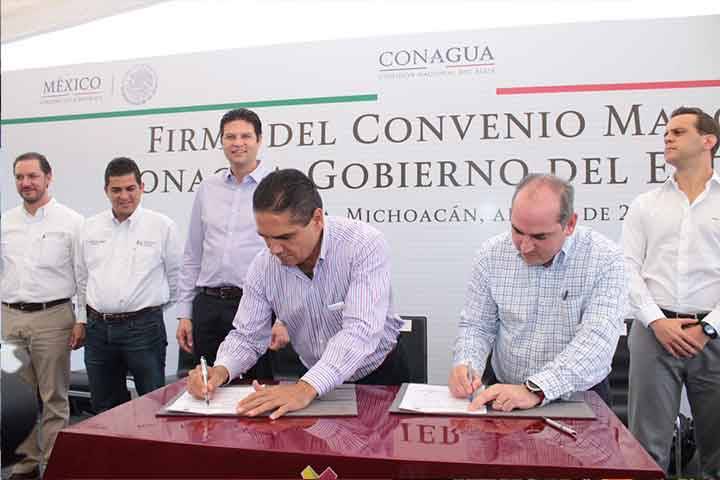 NOTICIAS 07/04/2016Conagua y Gobierno del Estado firman convenio El Gobernador del Estado, Silvano Aureoles Conejo y el director general de la Comisión Nacional del Agua (Conagua), Roberto Ramírez de la Parra, signaron el convenio marco para conjuntar recursos y acciones en Infraestructura Hidroagrícola, de Agua Potable, Alcantarillado y Saneamiento, de igual forma dieron banderazo de arranque de trabajos de la construcción del colector sanitario norponiente en Morelia, que tendrá una inversión de 20 mi... Ver más...
