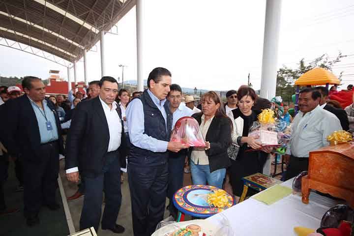 NOTICIAS 20/03/2016Reconoce Gobernador a artesanos michoacanosEl Gobernador de Michoacán, Silvano Aureoles Conejo junto con el secretario de Desarrollo Social (Sedesol), José Antonio Meade Kuribreña, entregó reconocimientos a artesanos de la entidad, en el marco de la LVI edición del Tianguis Artesanal de Domingo de Ramos de Uruapan.