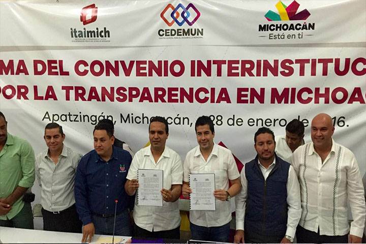NOTICIAS 28/01/2016El Gobierno de Michoacán, comprometido con la transparencia El vocal ejecutivo del Centro Estatal para el Desarrollo Municipal (Cedemun), Carlos Paredes Correa, y el presidente del Instituto para la Transparencia y Acceso a la Información Pública del Estado de Michoacán (Itaimich), Ulises Merino García, encabezaron hoy en esta demarcación la firma del Convenio Interinstitucional por la Transparencia en Michoacán.