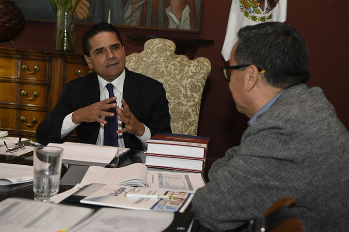 Reunidos en Palacio de Gobierno, el secretario de Gobierno, Adrián Lópe... Ver más...